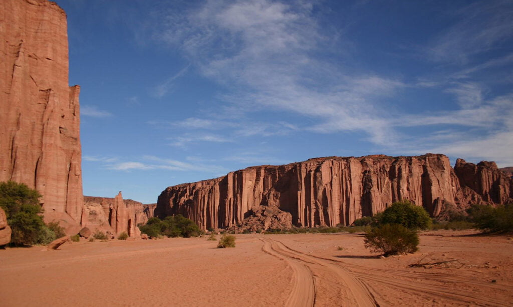 Además, en ambos sitios se recorren extraordinarias formaciones geológicas, de paredones rojizos de 140 metros hasta El Hongo, la Cancha de Bochas o el Valle Pintado.