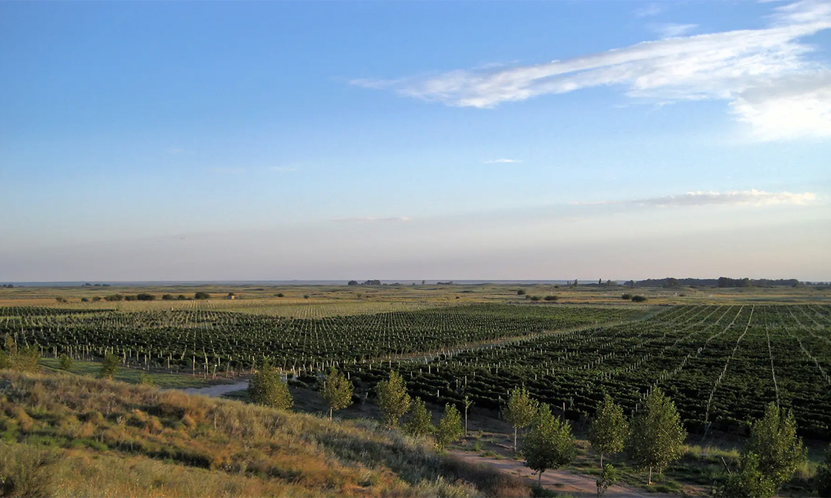 Las características de Médanos son, además, un privilegio natural para la vid. Suelo pobre en materia orgánica, subsuelo de tosca blanca y el característico viento medanense hacen que los vinos adquieran personalidad propia. “El hecho de ser una zona ventosa tiene la característica de estimular a la uva a desarrollar una piel más gruesa. Mucho de lo que nosotros apreciamos del vino está directamente relacionado con la piel. Para nosotros que hacemos vino, esa es una característica muy favorable, porque le agrega mucho color, aroma y sabor al vino”.
