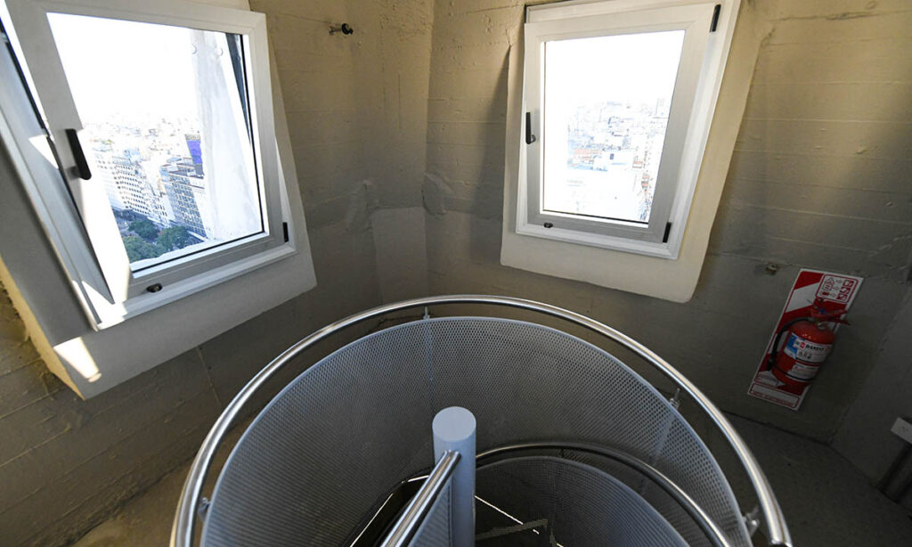 Los grupos suben cada 15 minutos y una vez en la cúspide, las cuatro ventanas del mirador ofrecen una perspectiva completa del cruce de las avenidas 9 de Julio y Corrientes. Desde allí, se puede apreciar el gran trayecto de la avenida más ancha del mundo, el frente del emblemático Teatro Colón y la cúpula del Congreso nacional, entre otros grandes atractivos del destino.