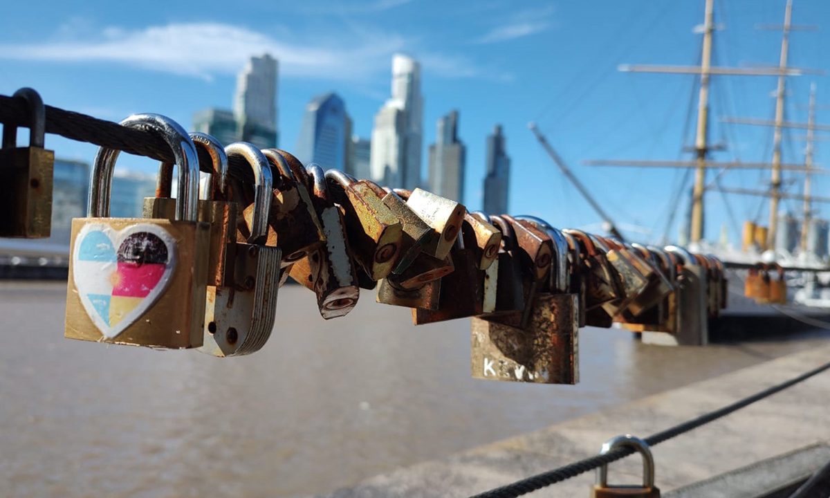 Es tradicional en este puente, que desde su inicio tiene un significado romántico, ya que simboliza a una pareja bailando el sensual baile del tango, que los enamorados coloquen candados para jurarse amor eterno.
