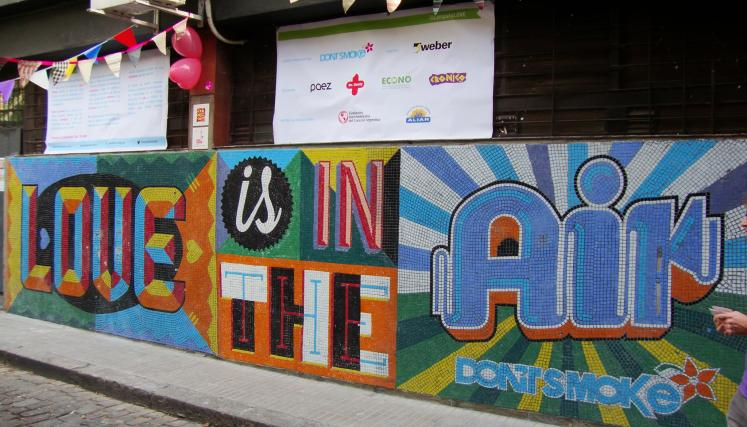 En medio de la gran cantidad de murales que hay en la zona de Palermo, “Love is in the air” es una obra de arte callejero ideal para tomarse una selfie de a dos.