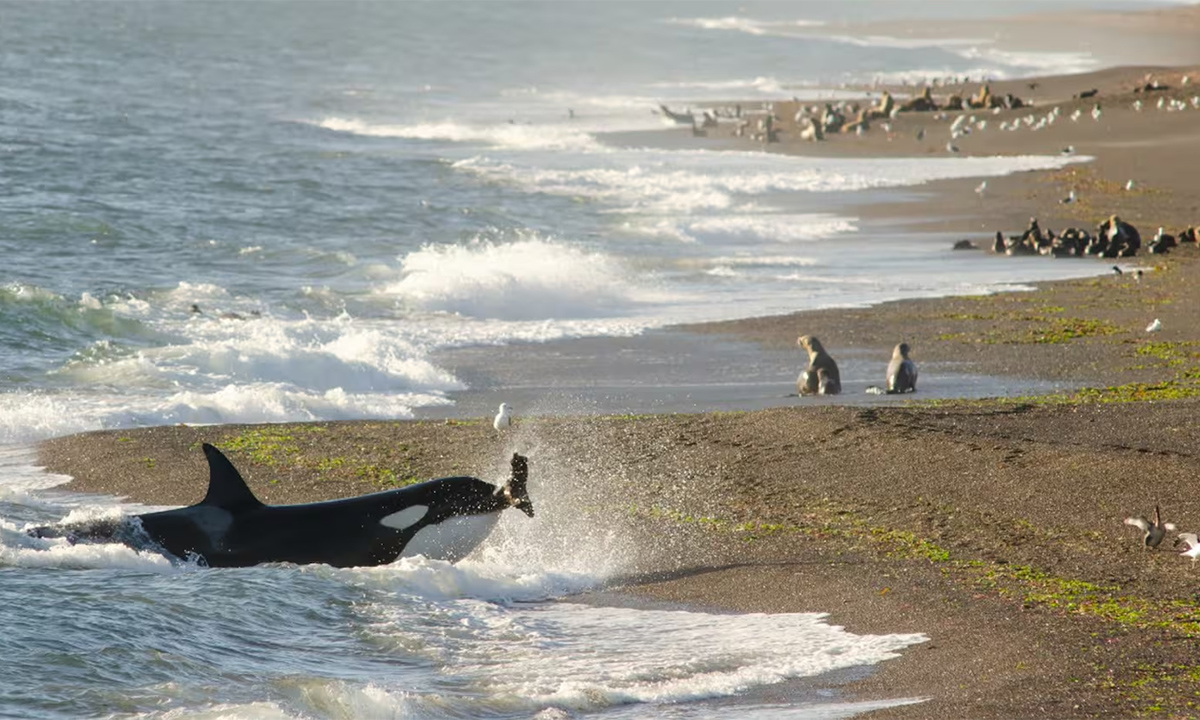 El fenómeno del varamiento intencional de orcas en Península Valdés convierte a esta área protegida de Chubut en un escenario único a nivel mundial. Este comportamiento, que consiste en encallar parcialmente en la playa para capturar presas, puede observarse principalmente en dos momentos del año: entre marzo y abril en Punta Norte, cuando las orcas cazan crías de lobos marinos, y entre octubre y noviembre en Caleta Valdés, durante la temporada de crías de elefantes marinos.